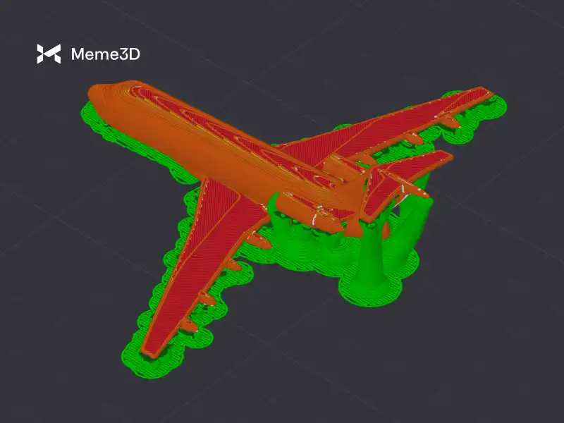 Khi cắt lát mô hình cho máy in 3D, hướng đặt mô hình rất quan trọng để đạt được chất lượng in tối ưu và giảm thiểu nhu cầu sử dụng vật liệu hỗ trợ. Hướng đặt đúng cách có thể giúp giảm thiểu các phần nhô ra – những vùng nhô ra ngoài mà không có lớp hỗ trợ bên dưới – vì các phần nhô ra lớn cần cấu trúc hỗ trợ để in đúng cách. Việc định hướng mô hình để giảm thiểu các phần nhô ra này không chỉ giảm lượng vật liệu hỗ trợ cần thiết mà còn tiết kiệm thời gian và vật liệu.