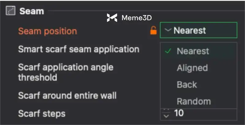 - Căn chỉnh đường nối Z : Nếu máy in sử dụng cùng một điểm bắt đầu cho mỗi lớp (đường nối được căn chỉnh), đường nối sẽ xuất hiện dưới dạng một đường thẳng đứng. Nếu điểm bắt đầu đường nối được chọn ngẫu nhiên, nó sẽ trải rộng trên bề mặt nhưng có thể tạo ra kết cấu thô ráp.