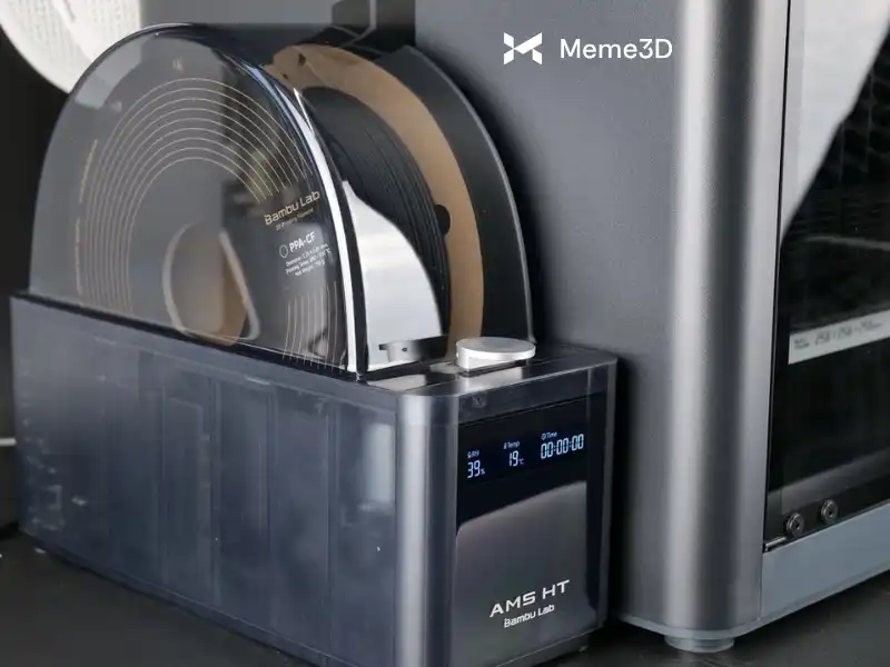 Sau khi sấy khô, hãy bảo quản trong hộp kín có chứa gói hút ẩm silica gel trong khi in để giữ cho sợi nhựa luôn khô ráo. Nếu bạn có máy sấy AMS HT , nó có thể giúp sấy khô sợi nhựa và hoạt động như một hộp hút ẩm, rất tiện dụng.