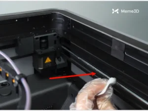 Việc bảo dưỡng trục Y tương tự như trục X. Bắt đầu bằng cách sử dụng một miếng vải không xơ được làm ẩm nhẹ bằng cồn để lau sạch cả hai mặt của thanh trục Y. Điều này giúp loại bỏ bụi, mảnh vụn và bất kỳ cặn bẩn nào có thể tích tụ, chuẩn bị cho việc bôi trơn đúng cách các trục.