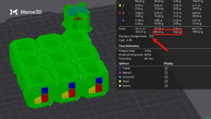 Để tận dụng tối đa điều này, nhiều vật thể có thể được bật cài đặt này trên bàn in, cho đến khi toàn bộ sợi nhựa được sử dụng hết hoặc cho đến khi bàn in hết chỗ. Như chúng ta sẽ thảo luận bên dưới, việc thêm nhiều chi tiết đa vật liệu giống hệt nhau vào một bàn in duy nhất là rất có lợi, vì vậy, việc thử nghiệm với các tỷ lệ khác nhau giữa các chi tiết đa vật liệu và các chi tiết được in tràn là một ý tưởng tuyệt vời nếu mục tiêu là hiệu quả và giảm thiểu lãng phí.