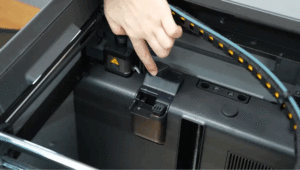 Ngay sau khi sợi nhựa được đẩy ra, đầu in sẽ kích hoạt cần gạt nhựa thừa để đảm bảo sợi nhựa đã được đẩy ra khỏi vòi phun. Sau đó, vòi phun được lau sạch trên miếng đệm silicon để loại bỏ bất kỳ mảnh vụn nào còn sót lại.