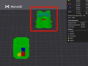Ngoài ra, nếu chi tiết không có mặt bên phẳng, đẹp để đặt lên bàn in, sẽ cần sử dụng nhiều sợi hỗ trợ hơn, điều này sẽ làm giảm (và có thể vượt quá) hiệu quả tiết kiệm sợi liên quan đến việc thay đổi màu sắc.