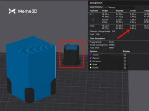 Lưu ý : Vì tháp Prime Tower phải đạt đến lớp cao nhất khi thay sợi in, nên việc in chỉ với việc thay sợi gần đỉnh sẽ lãng phí sợi in sạch để tạo nền móng cho tháp cho đến khi cần thiết. Ngược lại, nếu việc thay sợi chỉ xảy ra gần đáy, tháp sẽ dừng sớm khi không còn cần thiết nữa.