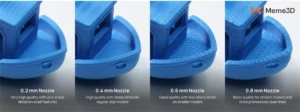 Đầu phun 0,2 mm được thiết kế để tạo ra các chi tiết siêu nhỏ và độ chính xác cao. Nó tạo ra các bề mặt nhẵn, các cạnh sắc nét và các chi tiết phức tạp, lý tưởng cho các bản in quy mô nhỏ đòi hỏi độ chính xác hơn tốc độ. Vì nó đùn ra ít vật liệu hơn mỗi giây, thời gian in sẽ dài hơn đáng kể và các bộ phận thành phẩm thường kém bền hơn so với các bộ phận được in bằng đầu phun lớn hơn.