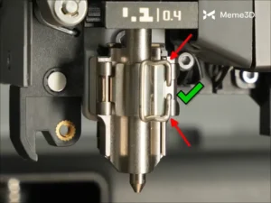Quan trọng! Hãy xác nhận rằng bạn đã lắp đặt và cố định đầu phun nhiệt đúng cách bằng cách so sánh với hình ảnh này. Việc lắp đặt không đúng cách có thể dẫn đến lỗi in.
