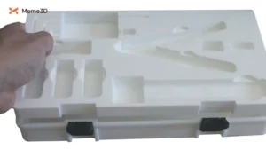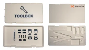 Lớp lót sẽ có nhiệm vụ bảo vệ các vật dụng bên trong hộp. Ở giai đoạn này, bạn nên quyết định cách bố trí các linh kiện hoặc phụ tùng mà bạn dự định cất giữ trong hộp. Trong trường hợp của chúng tôi, chúng tôi sẽ cất giữ tất cả các dụng cụ và phụ tùng thay thế đi kèm với máy in 3D P2S. Ngoài ra, một chiếc kìm cắt đa năng cũng được bao gồm, vì nó có thể hữu ích để cắt tỉa sợi nhựa.