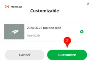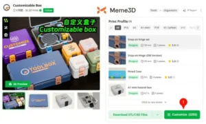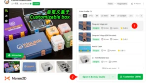 Bắt đầu bằng cách điều hướng đến Hộp Tùy chỉnh trên MakerWorld rồi nhấp vào “Tùy chỉnh” (1).