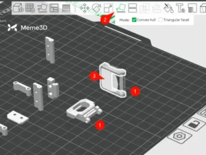 Hai mảnh khóa (1) phải được định hướng chính xác để đảm bảo chất lượng in hoàn hảo. Để làm điều này, hãy nhấp vào nút “Đặt lên mặt phẳng” (2) và nhấp vào mặt phẳng của các mảnh (3).