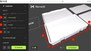 - Kích thước – Trong phần này, bạn có thể chỉnh sửa kích thước bên ngoài của hộp, chiều rộng, chiều dài và chiều cao. Ở bên phải giao diện, bạn sẽ thấy bản xem trước.