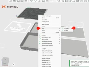 Nhấp vào mô hình, bạn sẽ thấy tất cả các đối tượng được hợp nhất thành một nhóm, nhấp chuột phải vào đối tượng, sau đó chọn “Tách” (1) và “Đến đối tượng” (2).