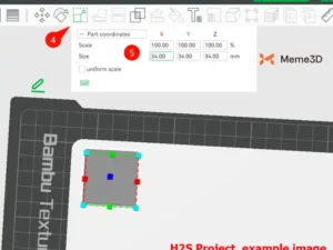 Nhấp vào tùy chọn “Tỷ lệ” (4) để thay đổi kích thước phần âm sao cho phù hợp với nhu cầu của bạn. Chèn kích thước (5) vào các trục khác nhau.