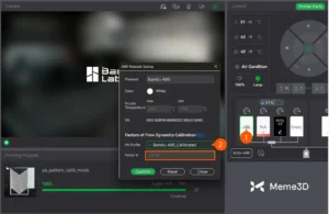 - Tự động hiệu chuẩn: Đây là phương pháp hiệu chuẩn động lực dòng chảy nhanh và dễ nhất. Ở chế độ này, bạn chỉ cần bắt đầu quá trình hiệu chuẩn, và các cảm biến của máy in sẽ phân tích bản in thử theo thời gian thực. Phần mềm sẽ tự động đề xuất giá trị K, sau đó bạn có thể áp dụng giá trị này. Vì quy trình hoàn toàn tự động, độ chính xác có thể thấp hơn đối với một số loại sợi in nhất định.