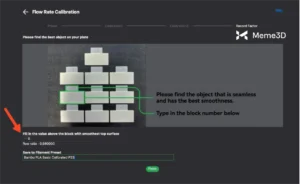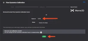 Tiếp theo, chọn mẫu có độ mịn cao nhất, trong trường hợp này là số 0, rồi đặt tên cho thiết lập sẵn của sợi filament. Quá trình hiệu chuẩn được hoàn tất bằng cách nhấp vào nút Finish.