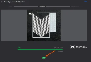 Sau khi bạn nhấp vào Calibrate , máy in sẽ bắt đầu tự động hiệu chỉnh sợi nhựa, đưa sợi nhựa qua vòi phun với tốc độ khác nhau và đo áp suất vòi phun một cách cẩn thận.
