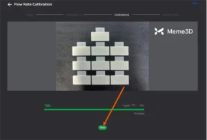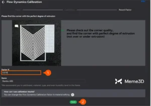 Dựa trên thử nghiệm này và loại sợi in được sử dụng, kết quả tốt nhất là giá trị K = 0,018 (được biểu thị bằng số 3), nằm trong khoảng từ 0,016 đến 0,02. Sau khi xác định được giá trị chính xác, trong Bambu Studio, hãy nhấp vào Tiếp theo.