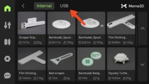 Duyệt qua danh sách các tệp trên USB và chọn tệp .gcode mà bạn đã chuyển, sau đó chọn tệp đó.