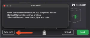 Sau khi hoàn tất thao tác này, bạn có thể xác nhận cách máy in sẽ sử dụng sợi nhựa bằng cách nhấp vào nút Tự động nạp lại.