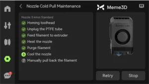 Thực hiện quy trình kéo nguội thường xuyên giúp khôi phục dòng chảy sợi nhựa thích hợp để đảm bảo quá trình đùn nhựa diễn ra đều đặn và giúp ngăn ngừa các lỗi in như thiếu nhựa hoặc các đường in không đồng nhất. Nên thực hiện việc này định kỳ, đặc biệt là khi chuyển từ loại sợi nhựa này sang loại sợi nhựa khác.