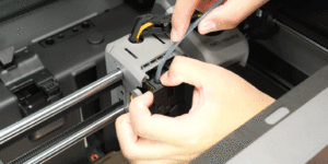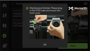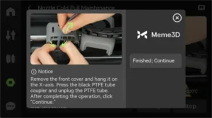 Một lời nhắc sẽ hiện lên màn hình yêu cầu bạn di chuyển nắp trước ra và treo nó lên trục X, sau đó tháo ống PTFE.