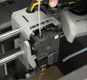 Bộ đùn sẽ tự động kẹp sợi nhựa, làm nóng vòi phun và bắt đầu xả nhựa. Khi sợi nhựa vừa đùn ra đã được thay thế hoàn toàn bằng sợi nhựa mới, vòi phun sẽ bắt đầu nguội đi.