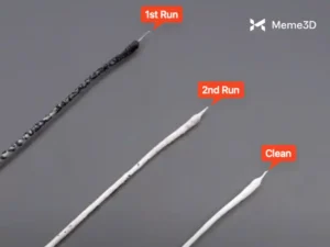 Sợi nhựa hoạt động như một “nút bịt” liên kết với cặn bẩn bên trong vòi phun trong giai đoạn làm nguội. Việc rút sợi nhựa ra sẽ giúp loại bỏ các chất bẩn, chẳng hạn như sợi nhựa bị cháy, bụi bẩn hoặc các vật cản nhỏ.