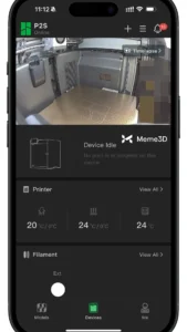 Sau khi đăng nhập vào Bambu Handy, hãy nhấn vào nút Thiết bị, màn hình sau sẽ hiện ra, tại đây bạn cần nhấn vào Liên kết máy in.