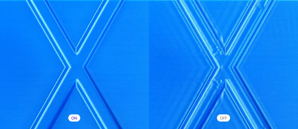 Hiện tượng rung (ringing) và bóng ma (ghosting) làm mờ các cạnh khi in ở tốc độ cao. Tính năng Bù trừ rung động chủ động (Active Vibration Compensation) sẽ loại bỏ chúng theo thời gian thực – nhờ đó các cạnh được in sắc nét, bất kể tốc độ nhanh thế nào.