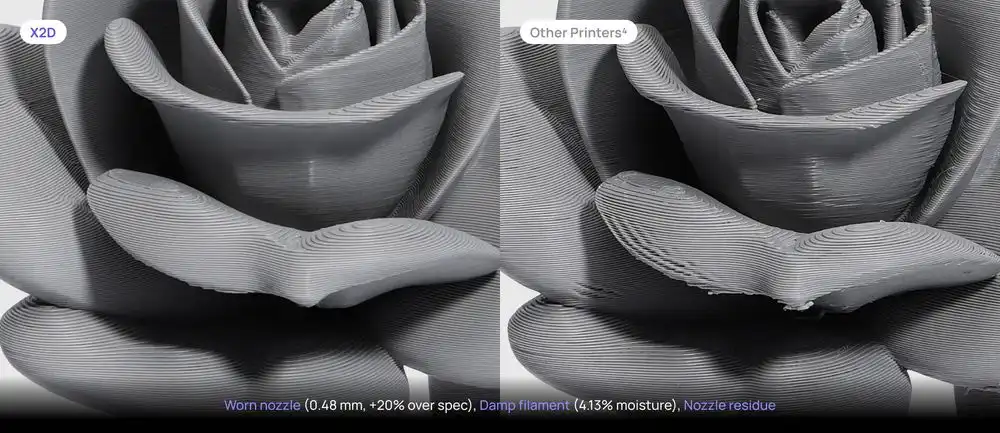 X2D là dòng sản phẩm nâng cấp của dòng X1C. Máy bổ sung hệ thống vòi phun kép hỗ trợ in tối đa 25 màu, buồng in gia nhiệt chủ động (lên đến 65 °C) dành cho các loại nhựa kỹ thuật, bộ đùn servo với cảm biến dòng chảy thời gian thực, tính năng phát hiện rối nhựa, hệ thống giám sát AI mở rộng với cả camera Live View và camera đầu in, cùng khả năng hỗ trợ hiệu chuẩn độ chính xác chuyển động dựa trên Vision Encoder. Tất cả những gì làm nên sự tuyệt vời của X1C đều được kế thừa, tinh chỉnh và nâng tầm.