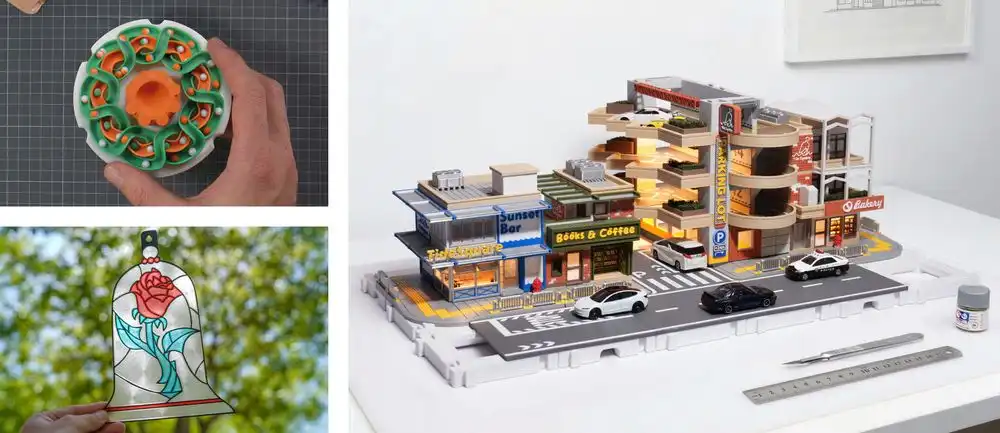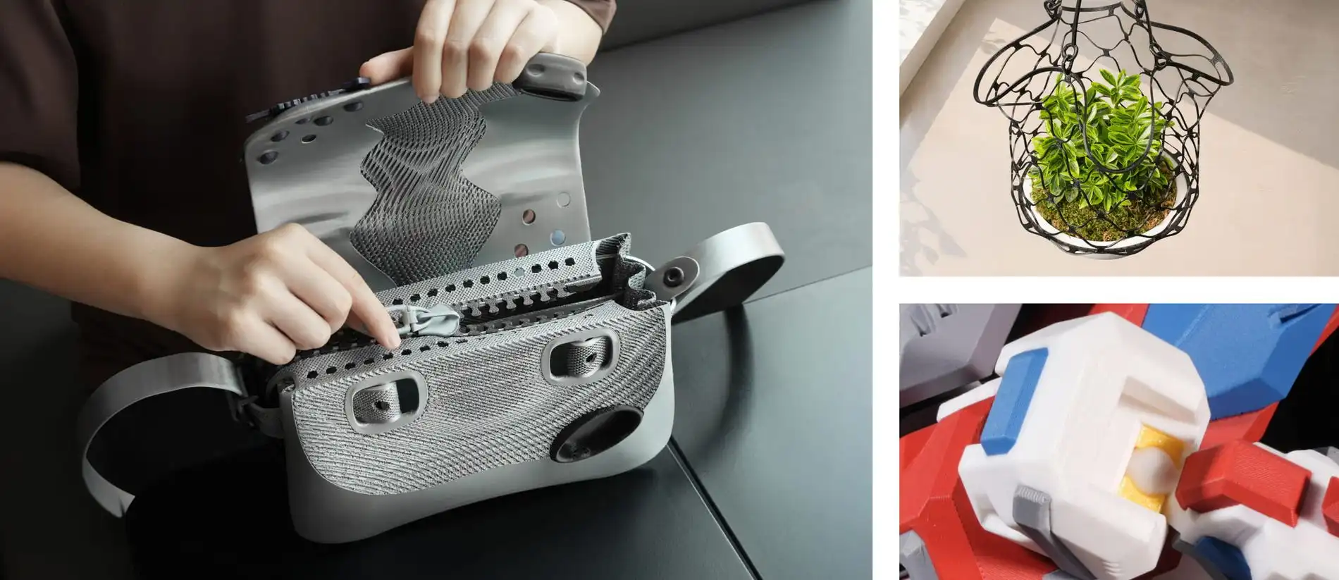 Sự kết hợp hoàn hảo giữa PLA và TPU trong cùng một mẫu in. Giờ đây, bạn có thể tạo ra các loại túi xách, tay cầm hay lớp đệm chống sốc (bumper) hoàn thiện ngay khi vừa nhấc khỏi bàn in.