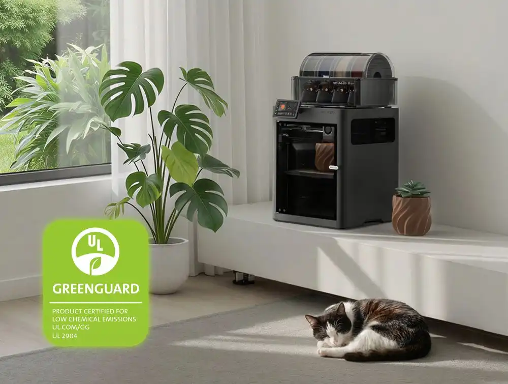 Nó chủ động hút không khí ra khỏi buồng in. Ở Chế độ Làm mát (khi in PLA và các loại nhựa nhiệt độ thấp), nó phối hợp với hệ thống luồng khí thích ứng để tản nhiệt và đẩy khói ra ngoài. Sau khi in các loại nhựa nhiệt độ cao, hãy bật tính năng “Làm sạch không khí khi kết thúc in” (Purify Air At Print End) để loại bỏ khói dư – bạn có thể tùy chọn dẫn khói ra ngoài trời thông qua ống thông gió.