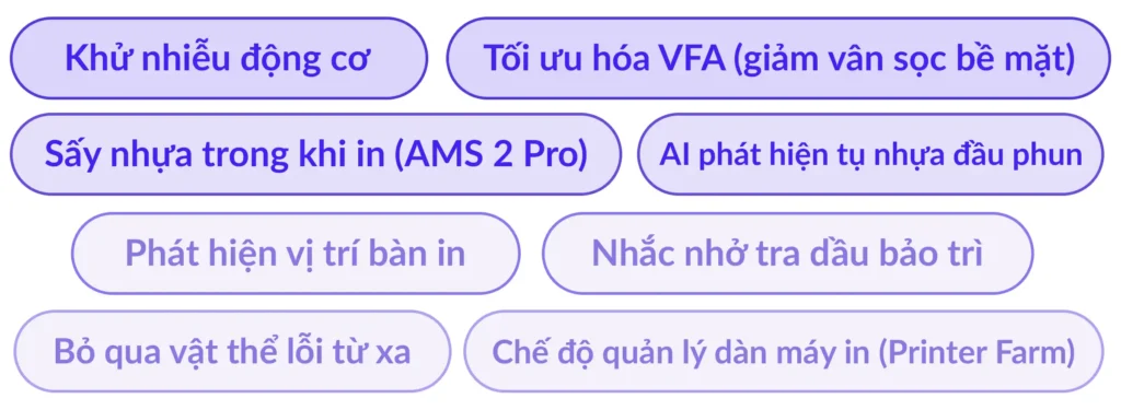 Sử dụng vòi phun kép: Cho phép in tối đa lên đến 25 màu khi kết hợp với cấu hình AMS tối đa.