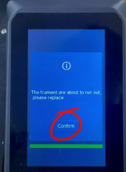 Khi máy dừng in, bắt đầu bằng việc nhấn nút “Confirm” trên màn hình điều khiển.